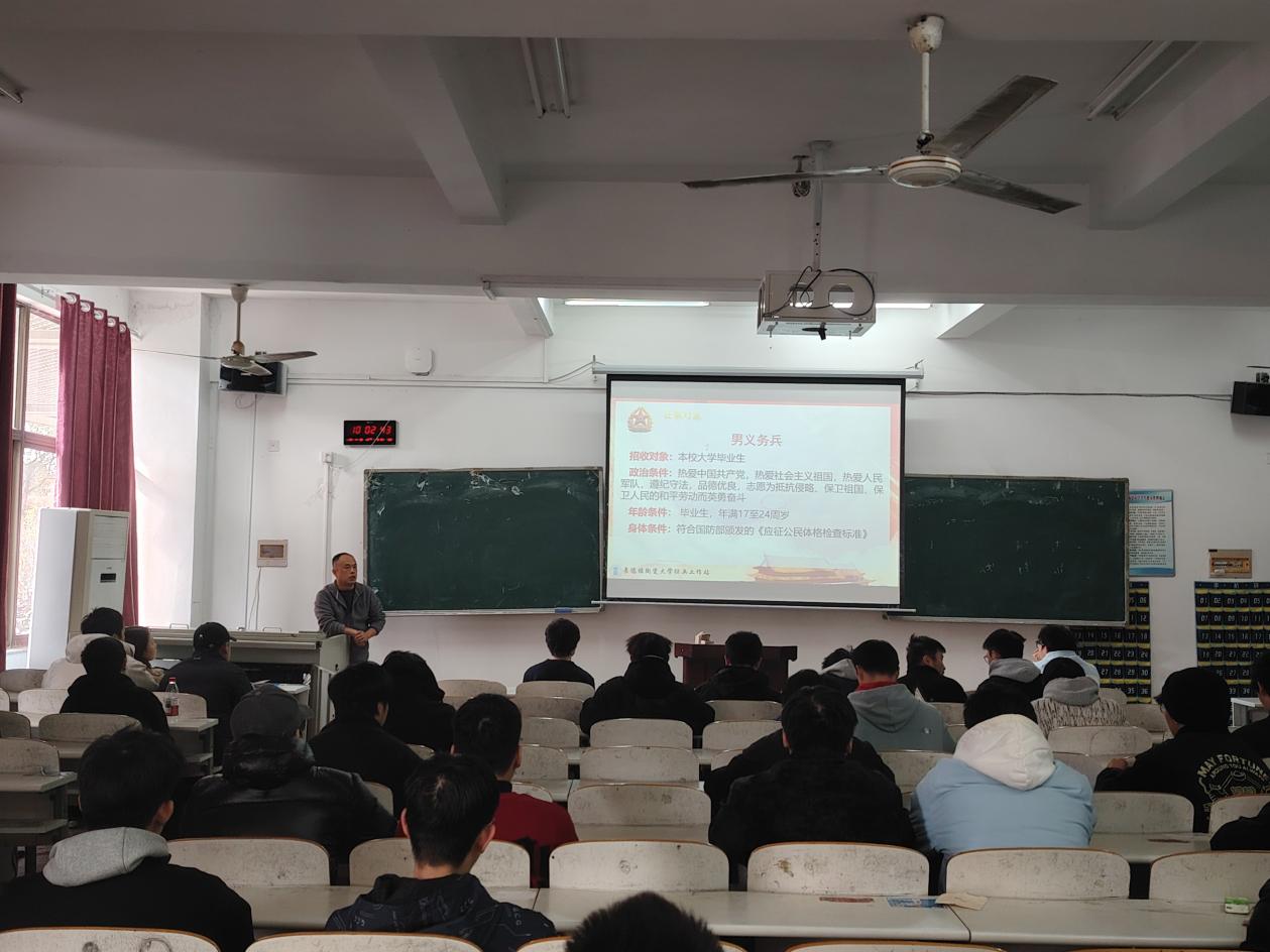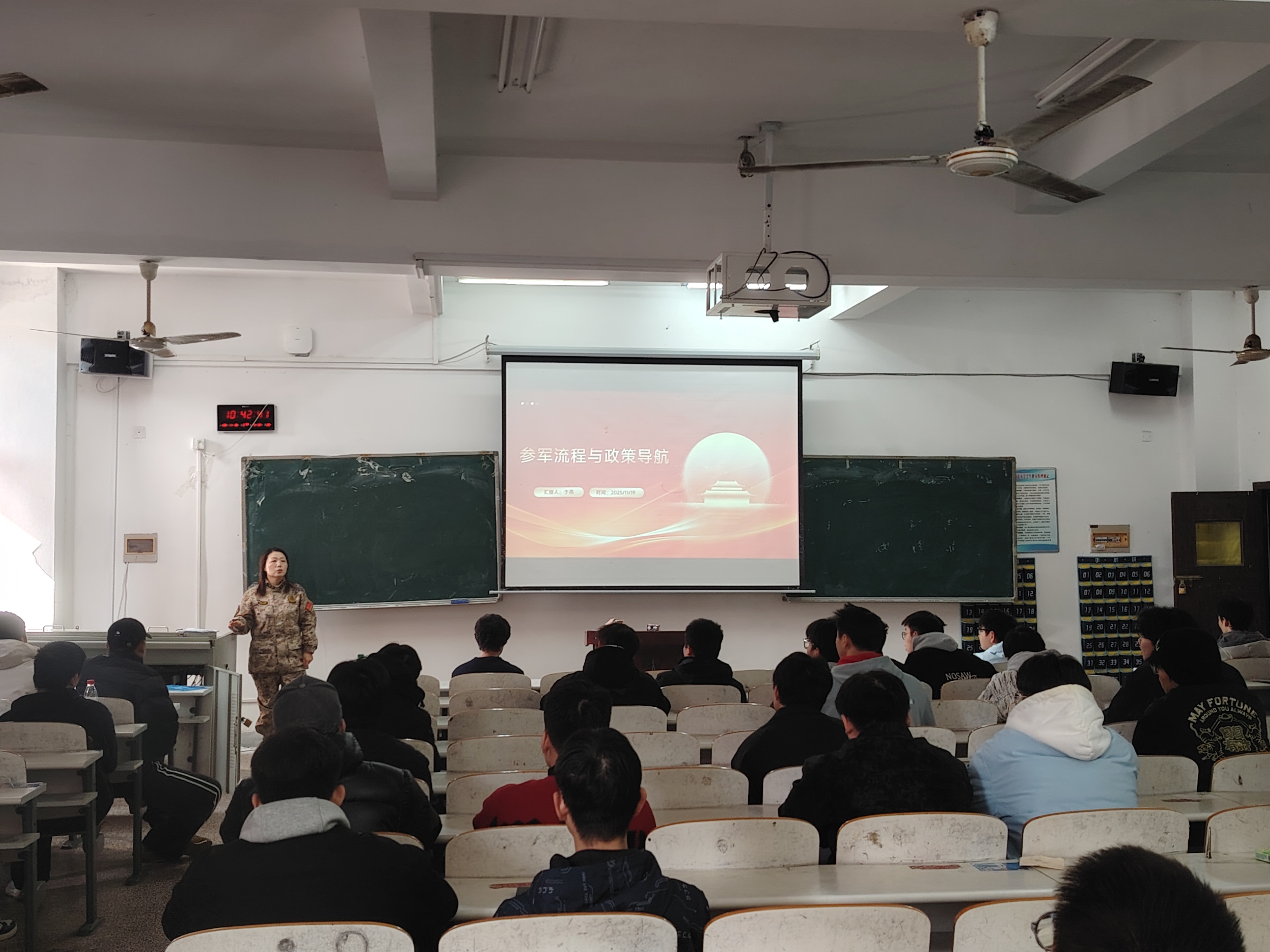 为点燃大学生应征入伍热情,让学生更进一步了解应征入伍的相关政策,打消大学生入伍的顾虑,武装部在湘湖校区(11月19日)和新厂校区(11月25日)分别开展了2026年征兵宣讲答疑活动。活动还邀请了珠山区征兵办公室于燕老师进行讲解。
